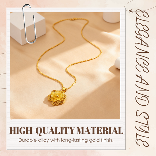 Collier élégant à pendentif fleur en ton doré