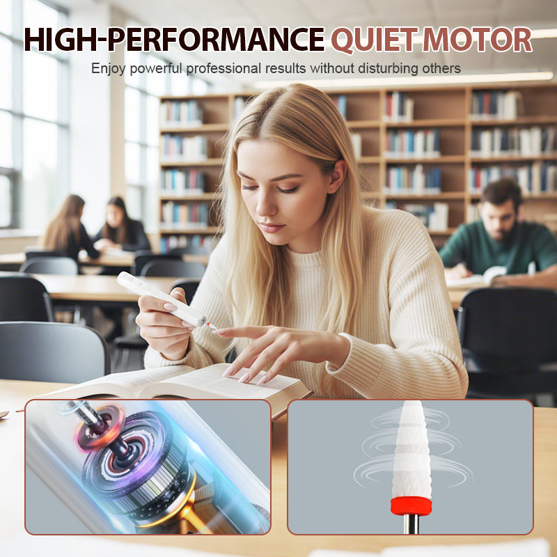 MOTEUR SILENCIEUX HAUTE PERFORMANCE - Obtenez des résultats professionnels performants sans déranger votre entourage grâce à une technologie de réduction du bruit avancée. Le moteur de précision offre un couple élevé et constant, garantissant un limage et un polissage efficaces sans les nuisances sonores des ponceuses à ongles classiques.