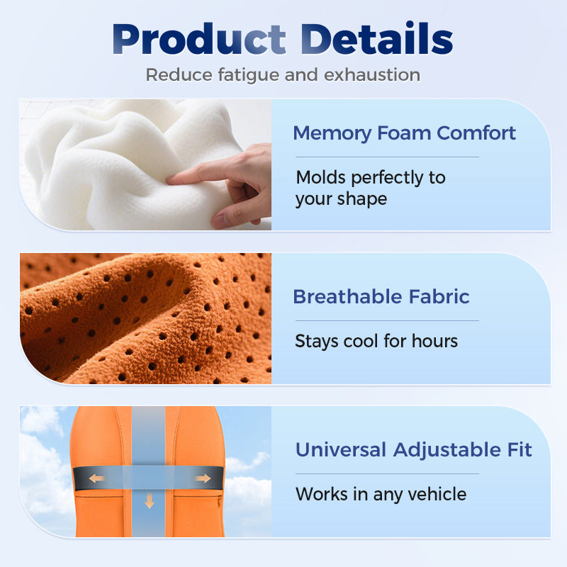 CLOUD-SOFT SUPPORT, EVERY MILE - Sink into premium slow-rebound memory foam that cradles your head, neck and waist like a gentle hug. Ideal for long commutes or road trips, it molds to your shape for perfect support—so you arrive refreshed, not fatigued.