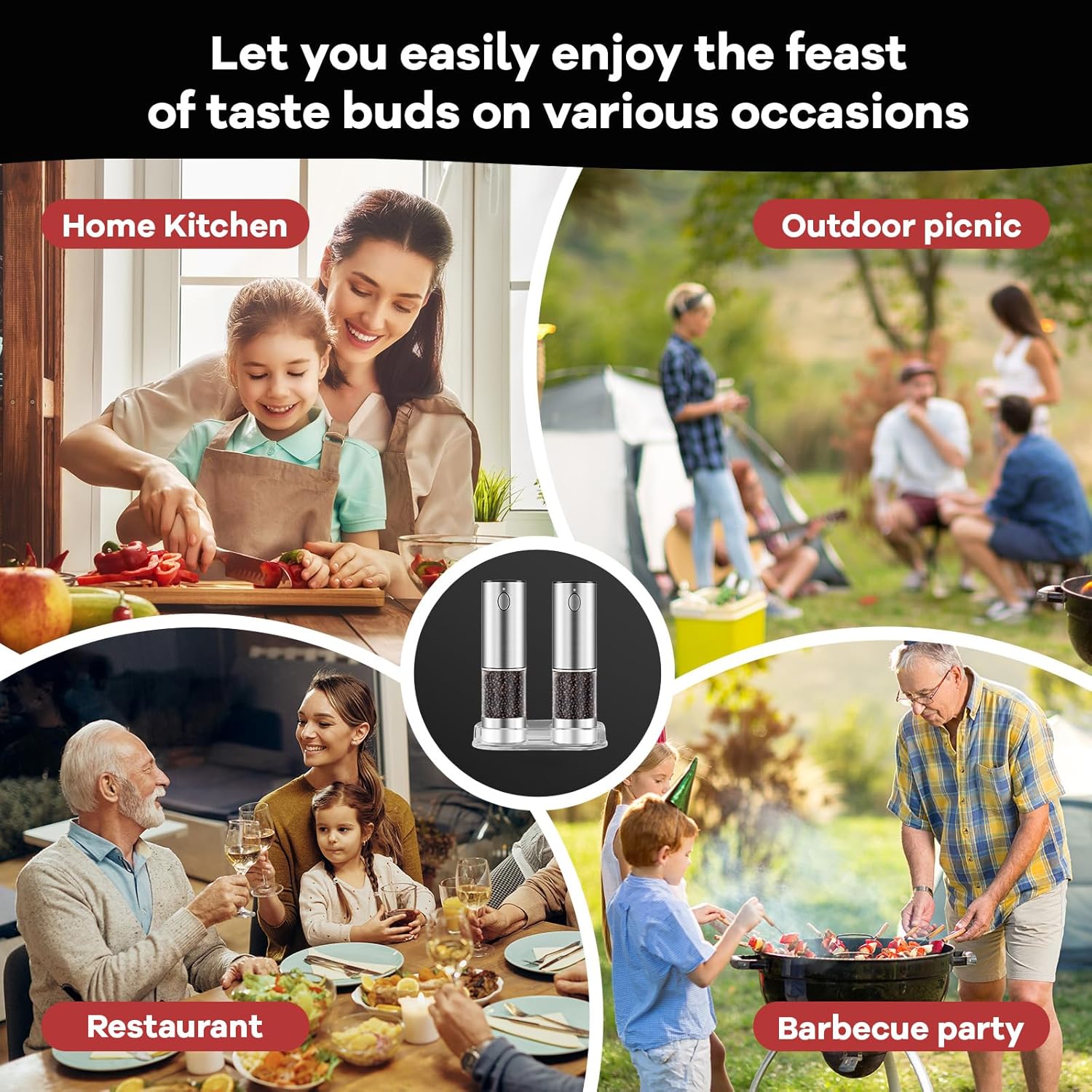 Notre magnifique moulin Ă sel et Ă poivre Ă©lectrique est fabriquĂ© en acier inoxydable et ABS de haute qualitĂ©, ce qui en fait le cadeau idĂ©al pour les mariages, les anniversaires, les pendaisons de crĂ©maillĂšre, la fĂȘte des MĂšres, la fĂȘte des PĂšres et NoĂ«l. Surprenez vos proches ! Ce moulin est un cadeau original pour les femmes et les passionnĂ©s de cuisine.