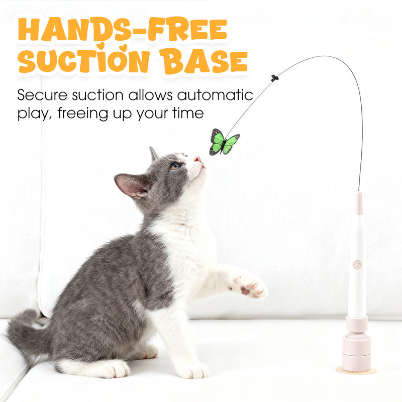 MODES DE JEU POLYVALENTS - Cette baguette pour chat offre une double fonctionnalité : elle permet de jouer de manière interactive lorsqu'elle est tenue à la main, ou de manière automatique, sans les mains. La ventouse puissante se fixe facilement sur des surfaces lisses et planes, permettant ainsi un jeu indépendant, ce qui est pratique pour les propriétaires d'animaux très occupés.