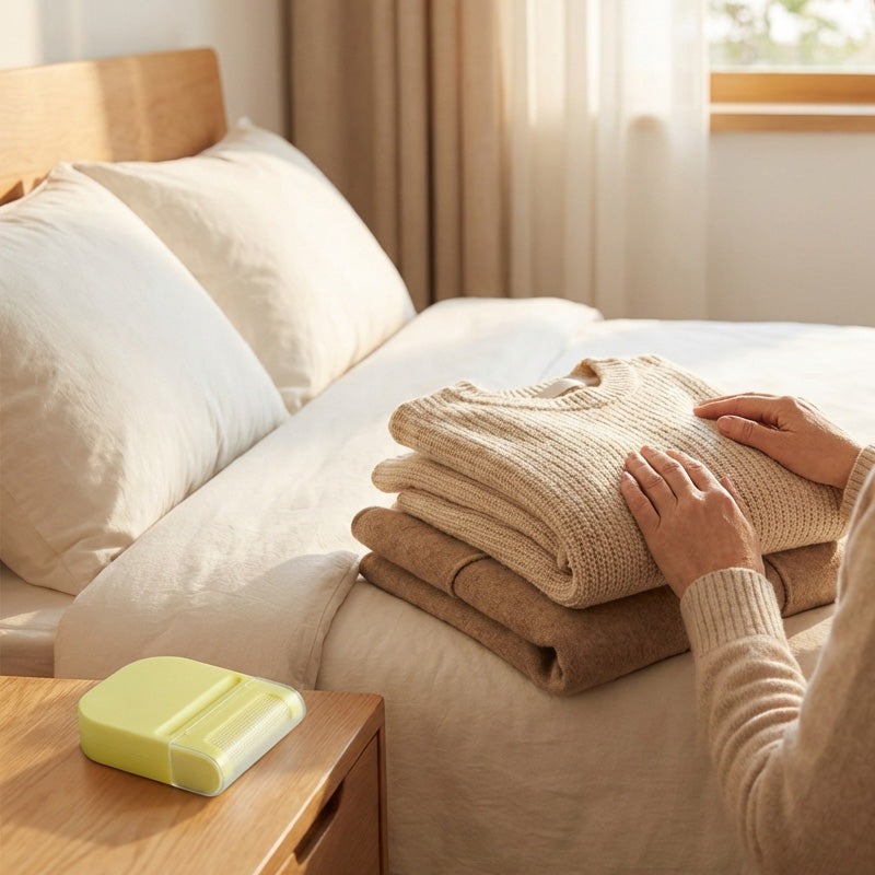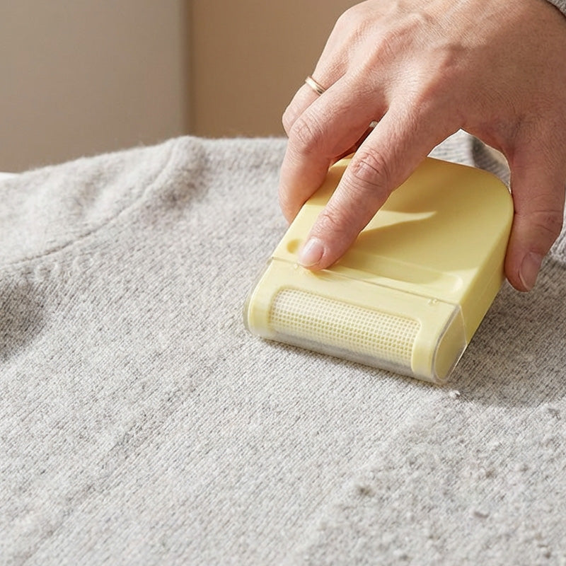 DUAL-HEAD DESIGN - Combines two tools in one. Use the fine mesh side to gently remove pills and bobbles, then flip to the soft brush side to smooth away lint and pet hair.