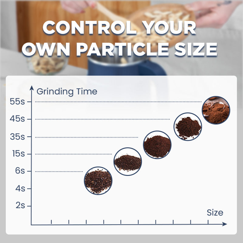MOTEUR PUISSANT : Équipé d'un moteur à haut rendement qui garantit une mouture cohérente et efficace en seulement 30 secondes. Idéal pour traiter rapidement une variété d'ingrédients, allant des épices aux grains de café, assurant une mouture fine et uniforme.