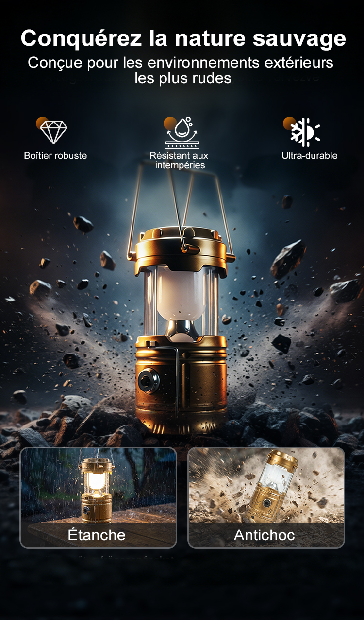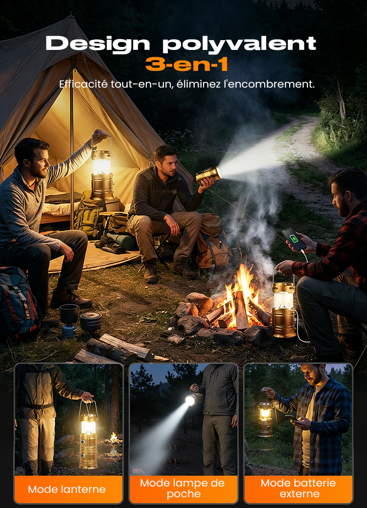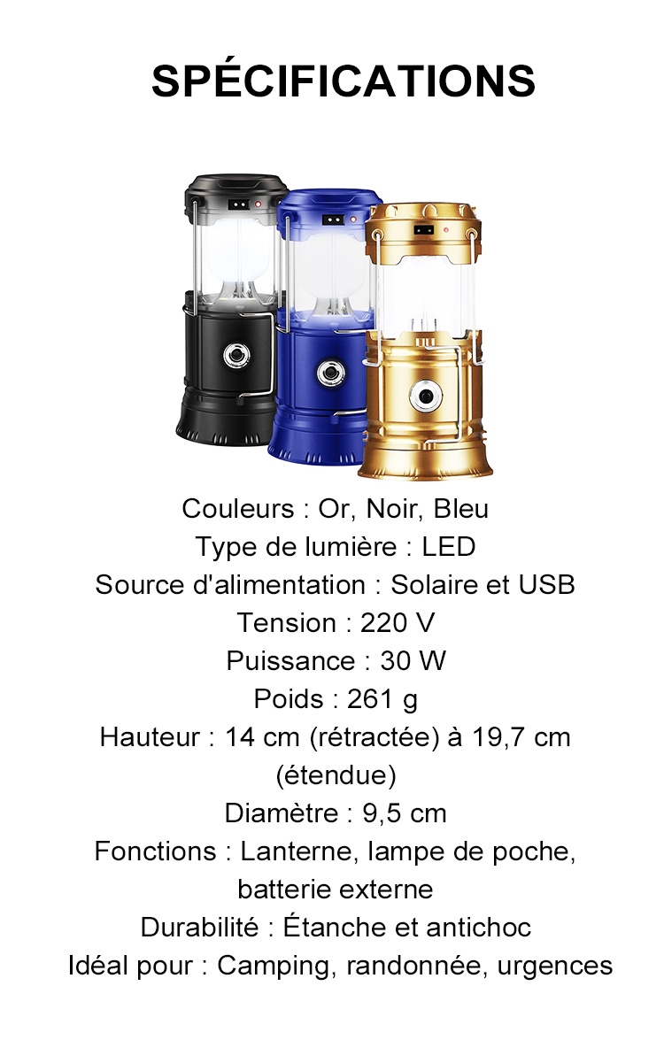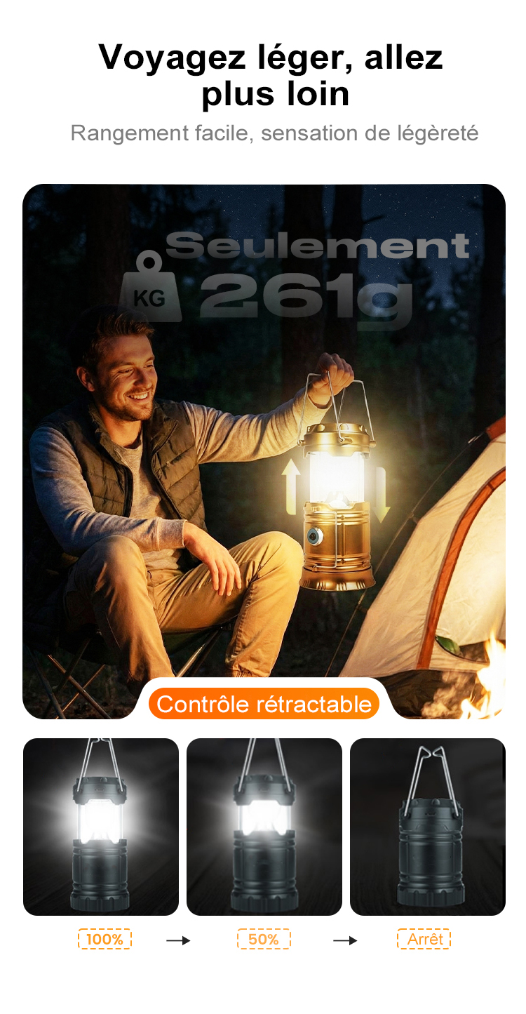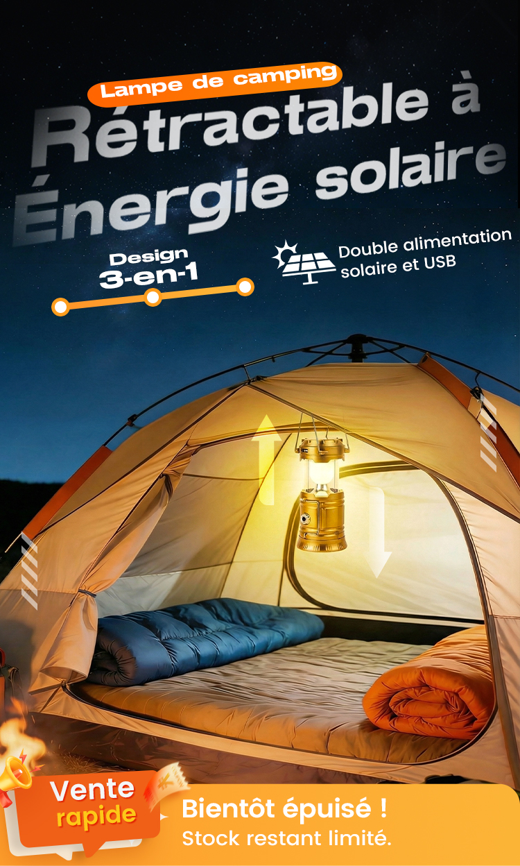 Lampe de camping rétractable à énergie solaire