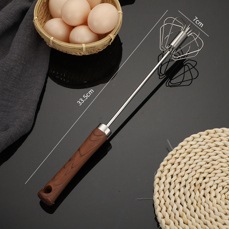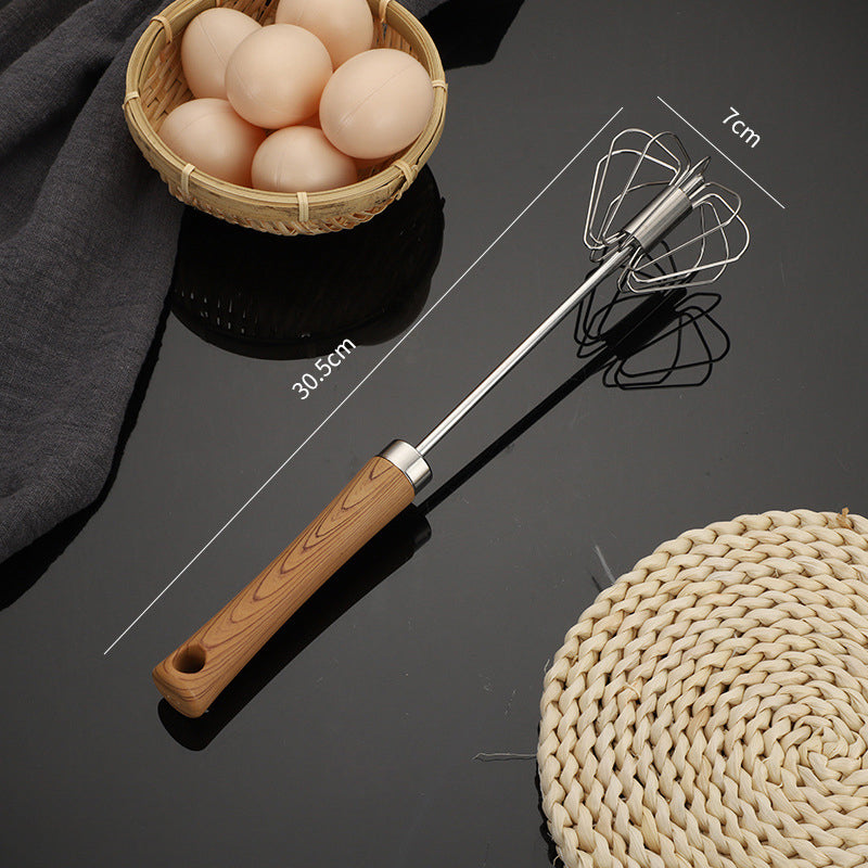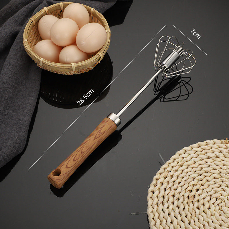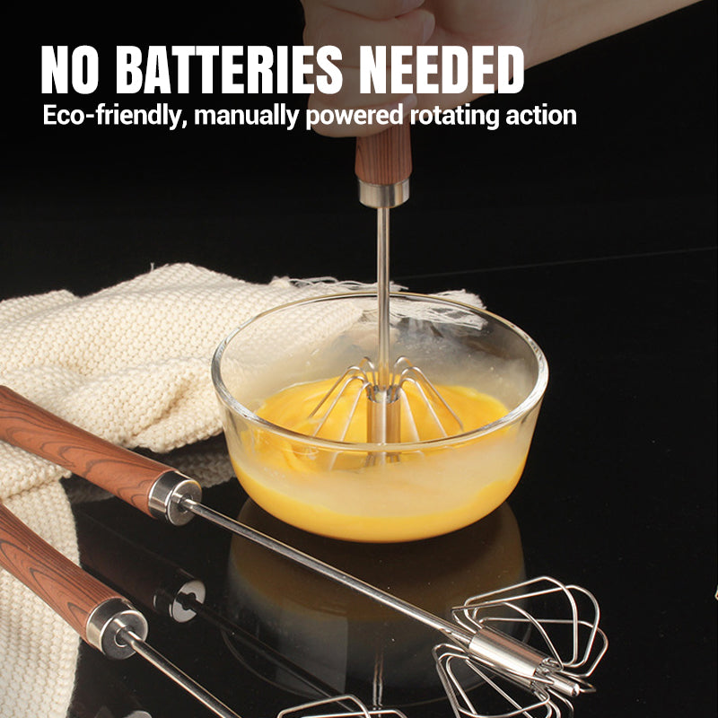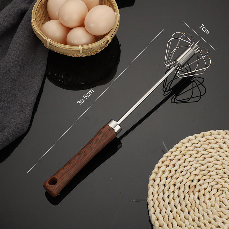 Fouet semi-automatique en acier inoxydable avec manche en bois