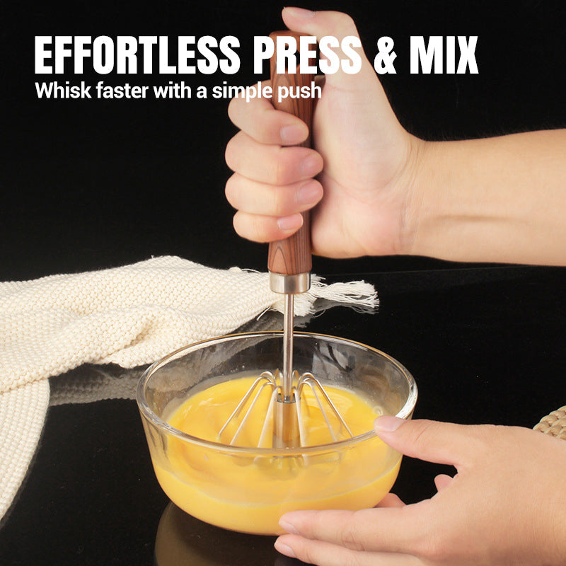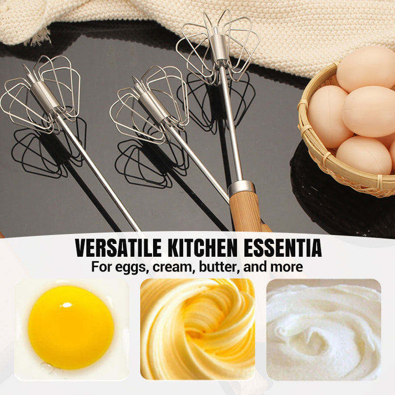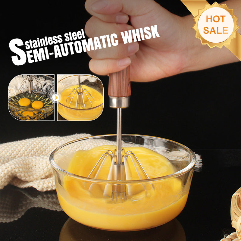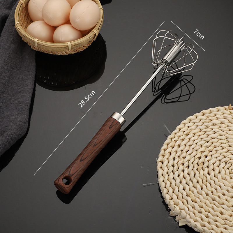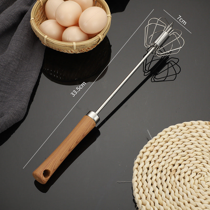 Fouet semi-automatique en acier inoxydable avec manche en bois