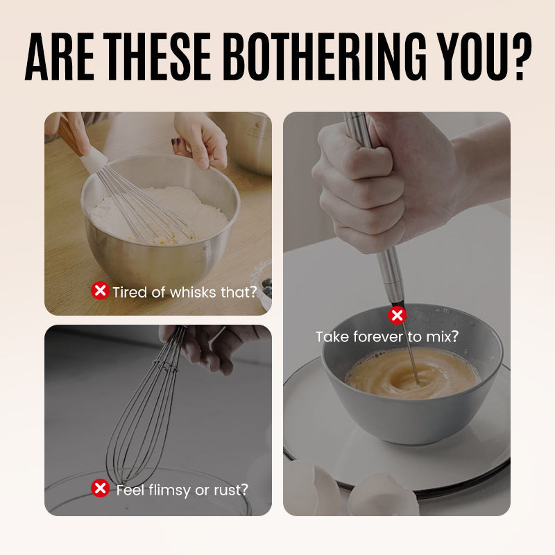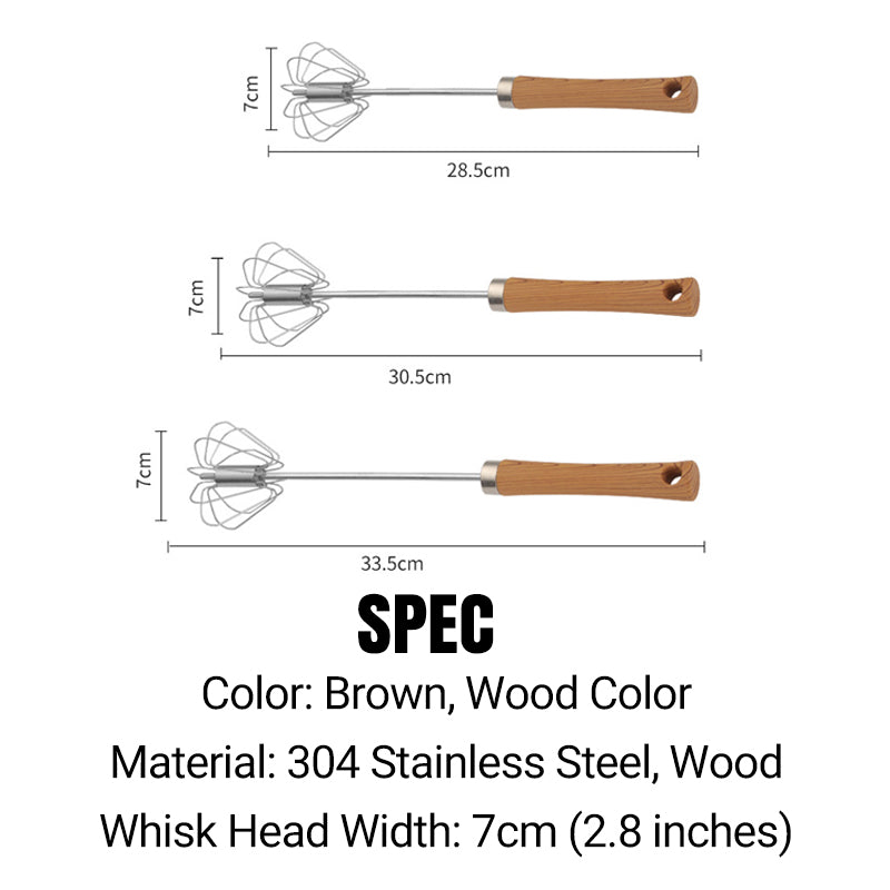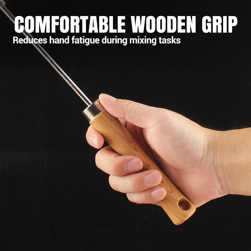 MANCHE EN BOIS ERGONOMIQUE - Un manche en bois épais et lisse offre une prise en main confortable et sûre. Sa conception réduit la fatigue de la main lors d'une utilisation prolongée, rendant le mélange de crème, d'œufs ou de pâte plus agréable.