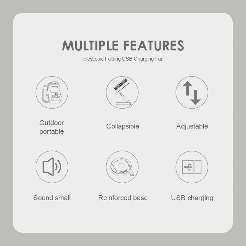 Nos ventilateurs télescopiques pliables à chargement USB peuvent être utilisés confortablement en toute saison. Profitez de l'été avec un nouveau concept.