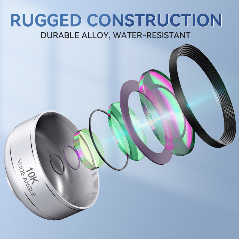 CONSTRUCTION ROBUSTE : Fabriquée à partir d'un alliage durable et de plastique haut de gamme, cette lentille résiste à l'usure quotidienne, aux éclaboussures d'eau et à la poussière. Conçue pour supporter les voyages, les aventures en plein air et une utilisation fréquente sans compromettre la qualité de l'image.